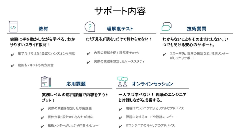 DevOps Campでは以下の5つの内容で、あなたの学習をしっかりサポートします!